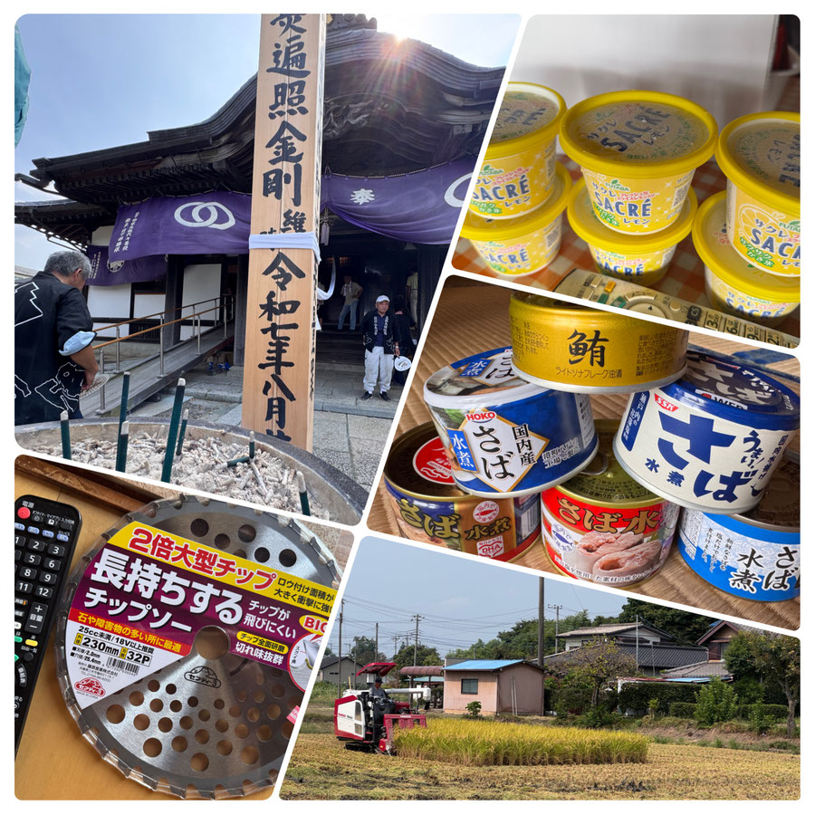 菩提寺の施餓鬼、毎年8月22・23日に営まれる地元の一大行事。昔は関東一円からバスや電車で行列をなして参詣人が押し寄せサーカスに見せ物小屋、農具や日用雑貨の販売、多くの飲食屋台などが境内を埋めたものだった。抱っこちゃんやフラフープ、かんしゃく玉鉄砲に当て袋…欲しかったな〜。ガーガー・バリバリ、人頼みの田んぼにエンジン音が響いた。今年も界隈トップで稲刈り、眺めていただけの総領も肩の荷が降りたってもんだ。そんな折、好物アイス「サクレ」の差し入れもあり夏バテ回復。DHA・EPAなど鯖パワーにすがり、来週は新チップソー(草刈刃)のデビュー戦だ。ま、ほどほどで…。