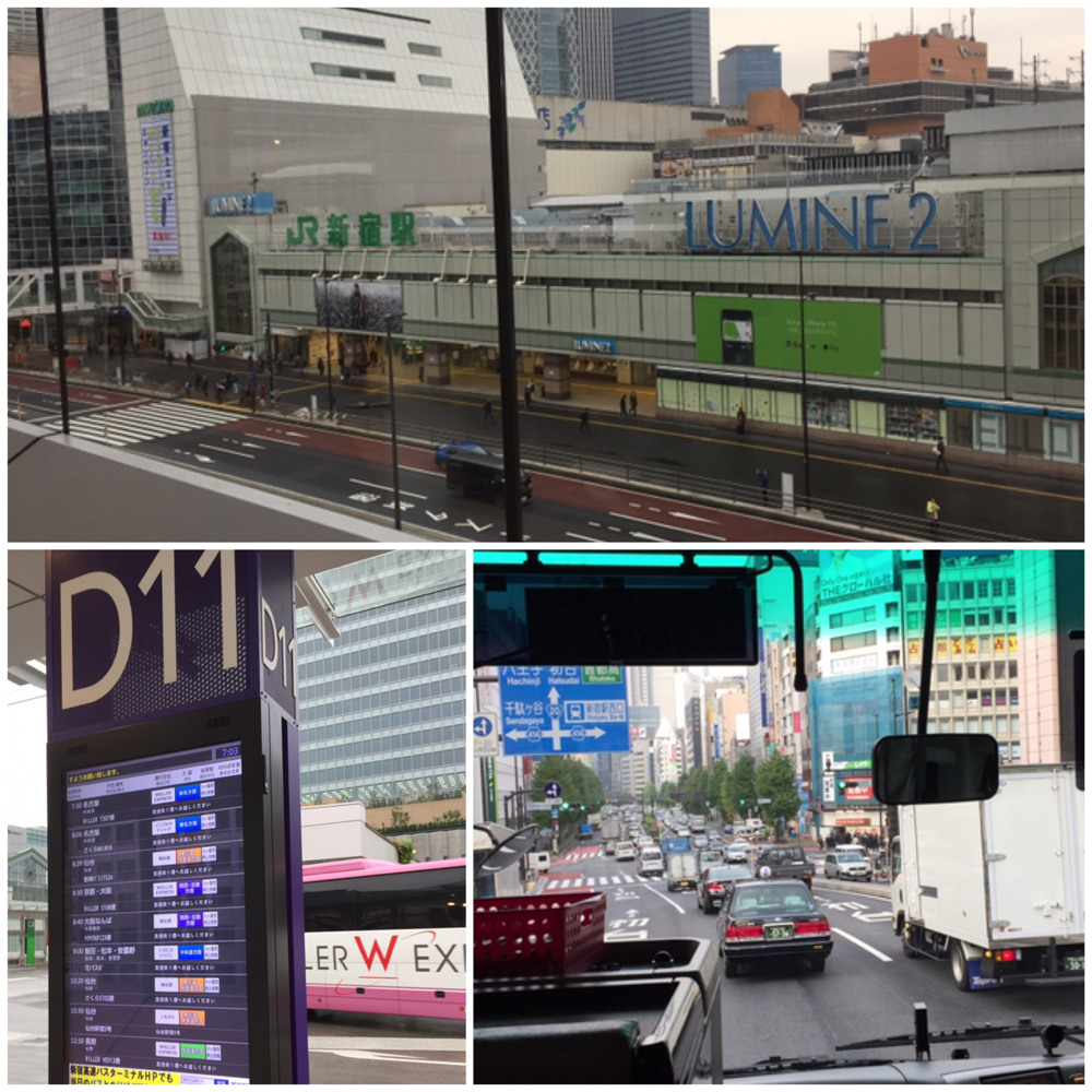 新宿駅周辺に散在するバス発着所を一箇所に集約した「バスタ新宿」。今回はここから出発するWillerバス社主催のバス&ホテルパッケージツアーに初めて参加。格安ゆえ横四列座席、快適さは望めないと思っていたが、狭いながらも隣の座席の圧力を感じさせない配慮された作りは大したもの。正直、惚れ直した。朝の七時半発車。首都高を大橋JCT、東名に入った。