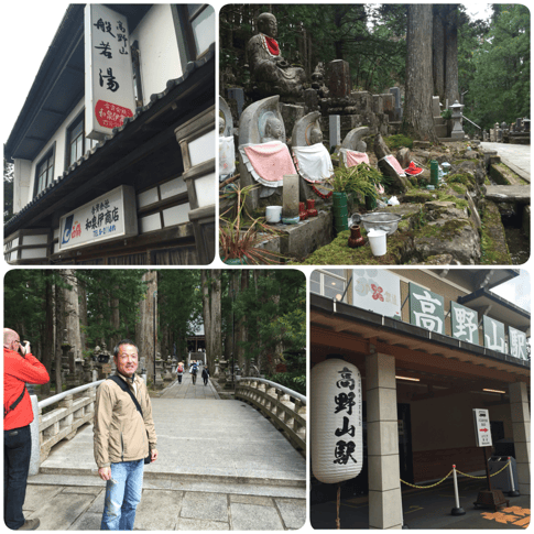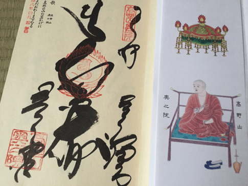 御廟橋の先は、1200年のときを経た今なお空海が生きている聖地だ。その橋の手前でパチリの図。納経所で満願の証を手にして、何故だか気分がふぁーっと軽くなった。ご利益を得たのだろうか。