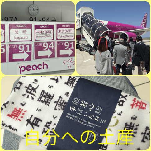 ホテルのチェックアウト時間の9時、新今宮駅か関空に向かう。LCC専用第2ターミナルへは終点駅の第1ターミナルからバスに乗る。ここで自分へのご褒美と満願記念の土産を購入。泉州特産のタオルに「般若心経」が描かれている。高野山の御朱印が押された納経帳と白衣と併せ、仏様に報告するんだ。合掌。