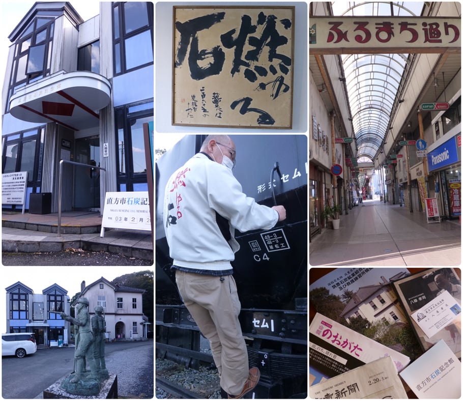 直方は、今でこそ平凡な地方駅だが往時はズズ〜イと引込線路を延ばした、筑豊の石炭の集積・輸送大拠点であった。目的の石炭記念館は駅から10分、前触れもなく立ち寄ったのに館長が直々に案内してくれた。石炭鉱業組合会議所も併設、明治・大正・昭和のエネルギー政策の成り立ちやその舞台裏、保安訓練施設など数々の資料や用具が展示されている。遺構規模は田川に譲るけれど、史実感と展示物の濃密さはここがピカイチ! ちなみに八尋(やひろ)館長は元国鉄機関士、施設内SLの制動操作を見せるサービスも抜かりがない。この日の宿は「ニューホープ」素泊まり5,700円、肩が触れ合う混雑は過去となったふるまち通り商店会に人が戻ることはもう無い。